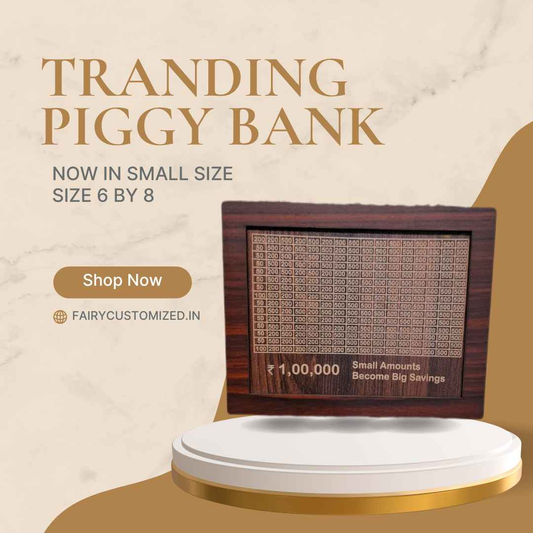 Customized MDF Piggy Bank - Unique Personalized Design with Custom Name and Photo on Back Side
