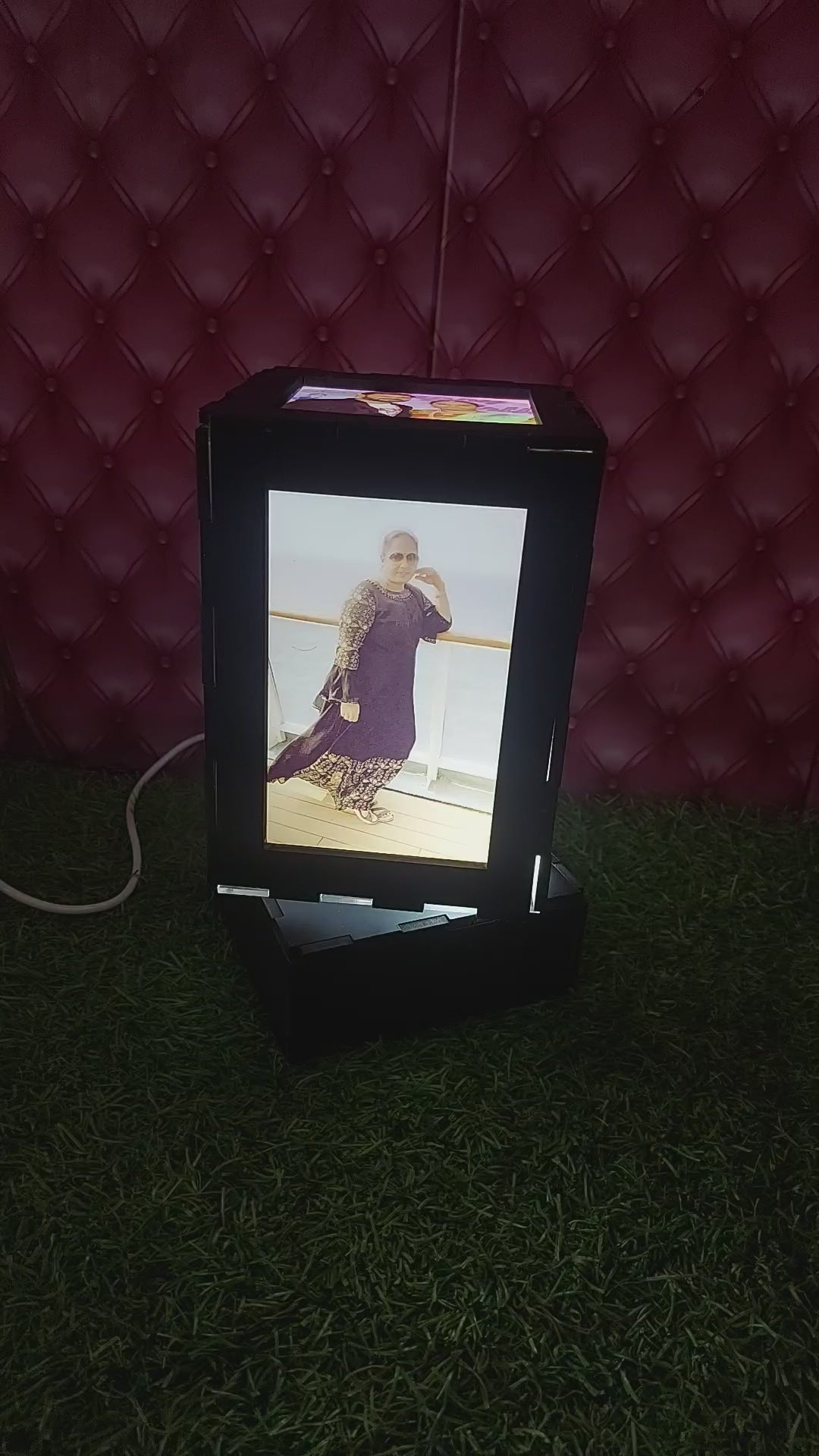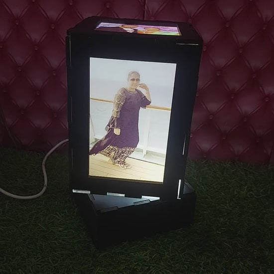 Discover the enchanting world of the rotating photo lamp. Available in various sizes, this remarkable lamp showcases the perfect fusion of lighting and cherished memories. With its captivating design, it elegantly rotates, bringing your favorite photographs to life. Immerse yourself in a mesmerizing display as the lamp spins, revealing a montage of several pictures that hold special significance.